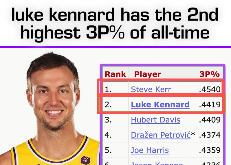 本赛季的湖人,三分出手位居联盟倒数,三分命中率也是一塌糊涂;而对于肯纳德而言,虽然不算顶级得分手,但在投射上堪称顶级。